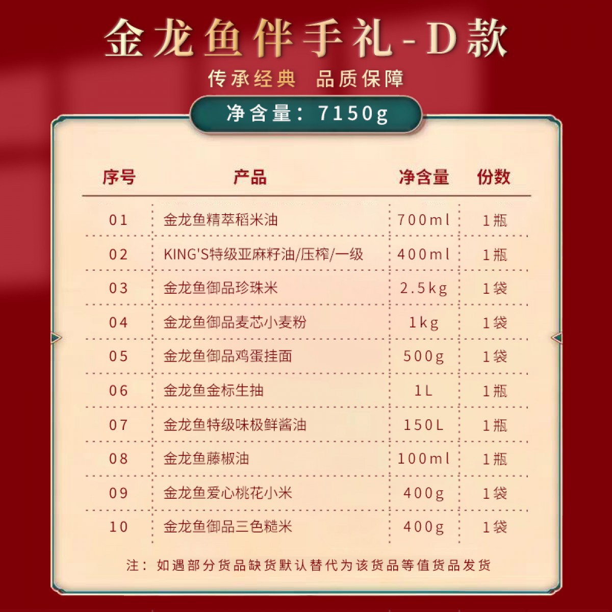金龙鱼米面粮油-D款 7150克 偏远另加运费