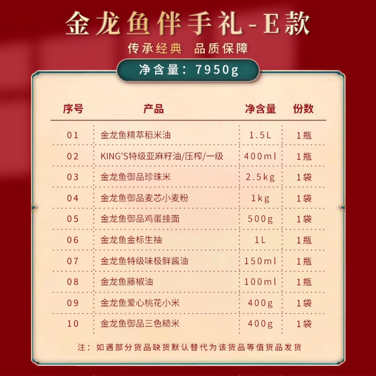 商品名称:金龙鱼米面粮油-E款 7950克 偏远另加运费