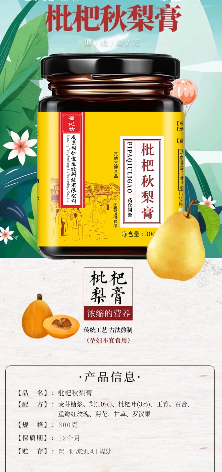 商品名称:福记坊 枇杷秋梨膏 300g*2瓶 6975251471609