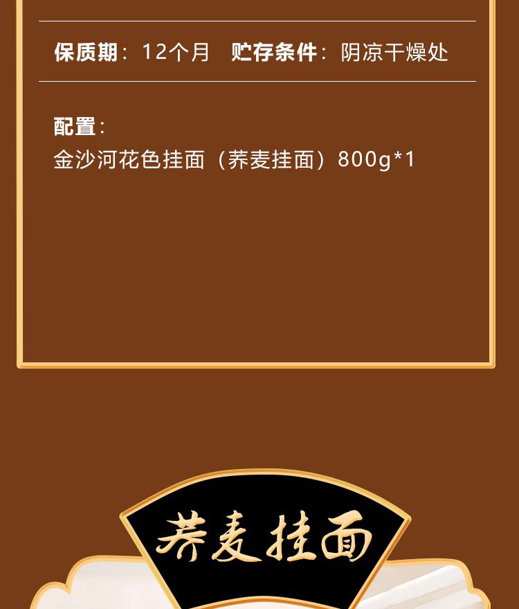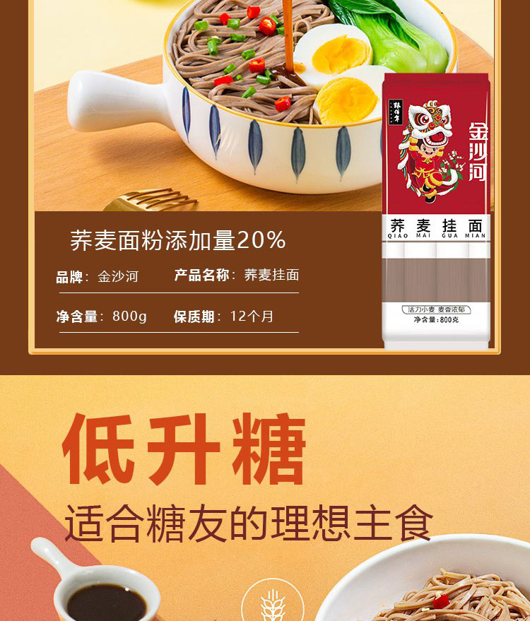 商品名称:金沙河粮佰年荞麦挂面 800g 6970893861382