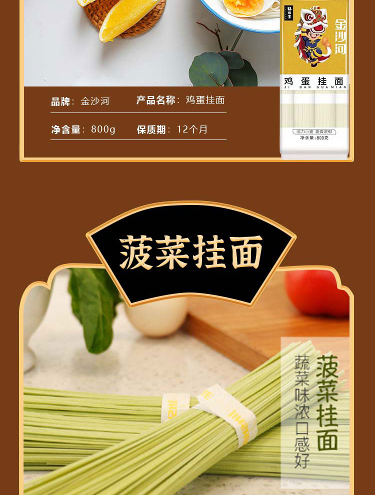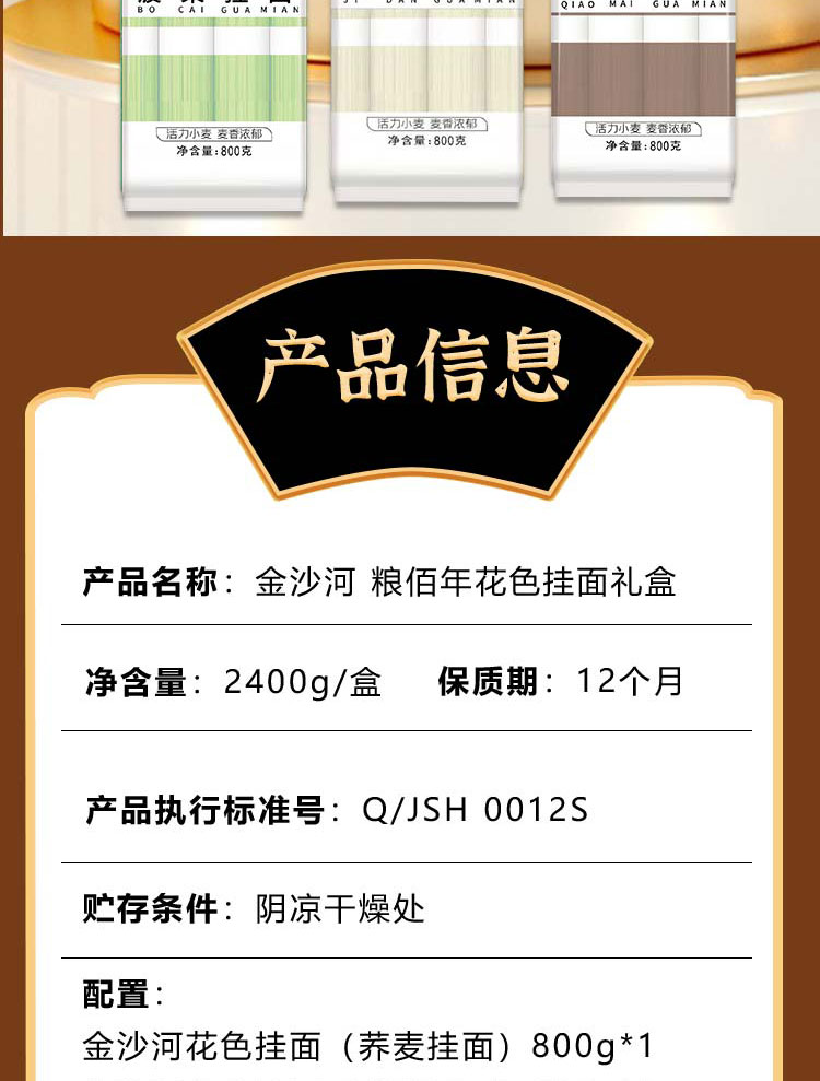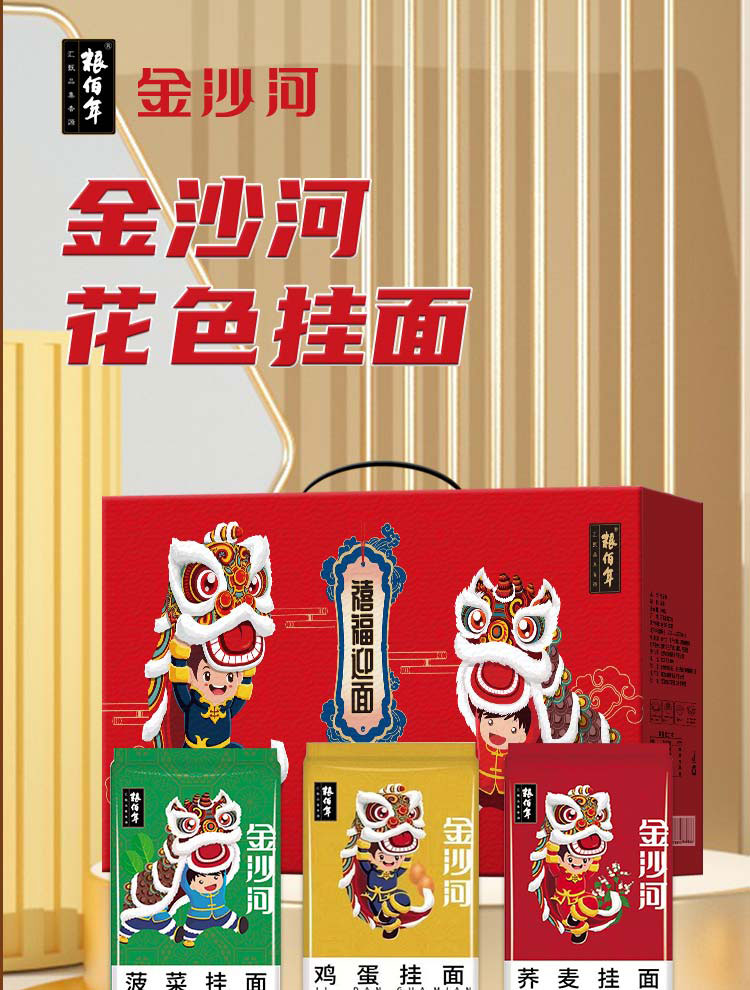 商品名称:金沙河 粮佰年 禧福迎面挂面3袋装礼盒4.8斤 6932759748442