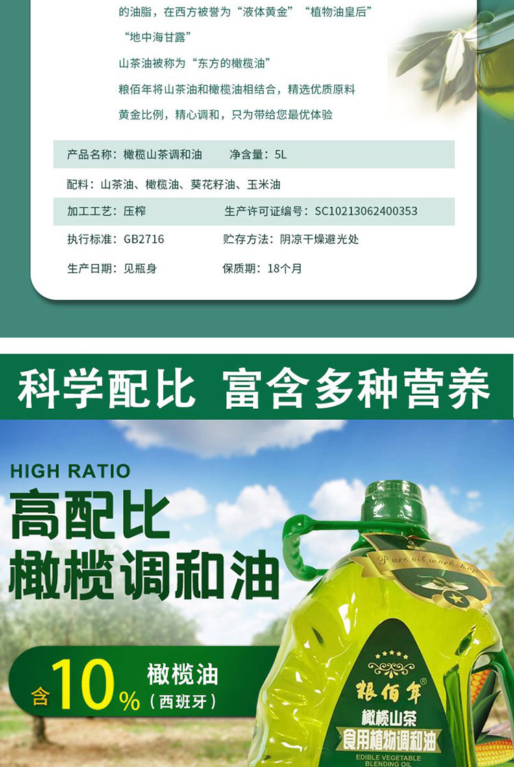 商品名称:粮佰年 橄榄山茶调和油5L桶 6970893861443