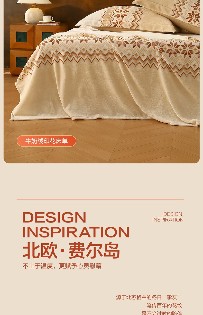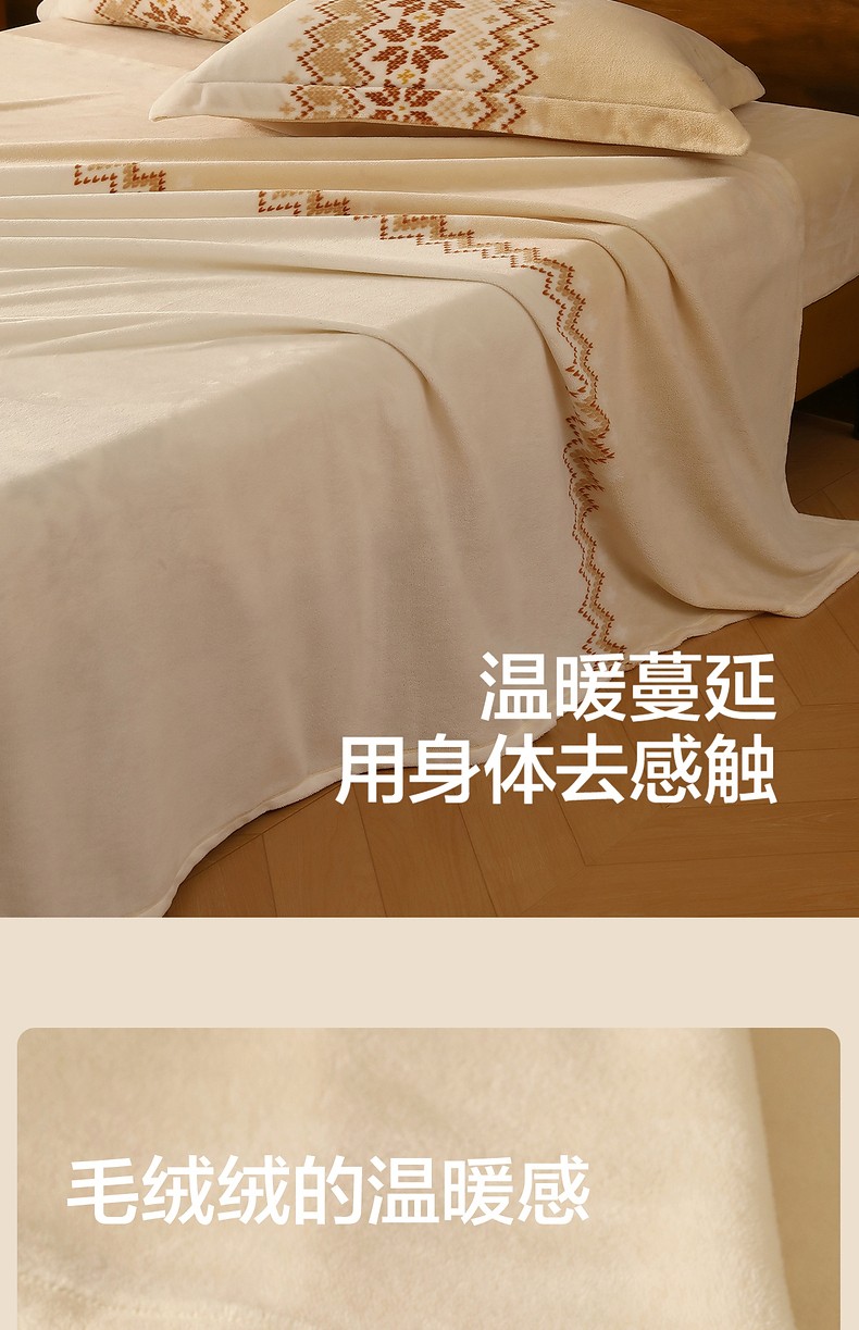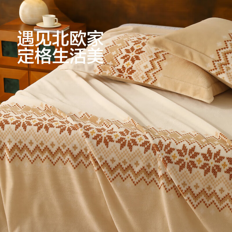 水星 北欧·丛绒费尔岛牛奶绒床单(奶油色)230cmx245cm