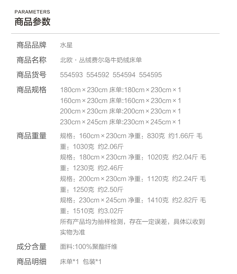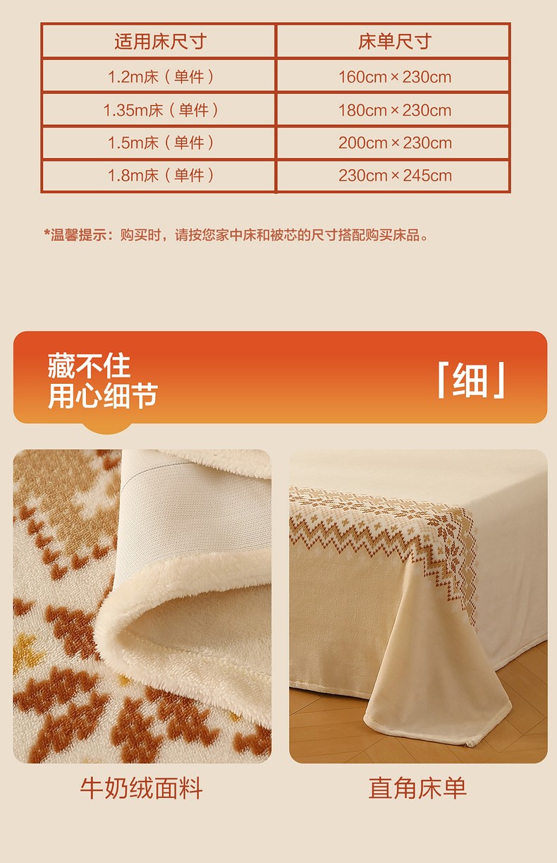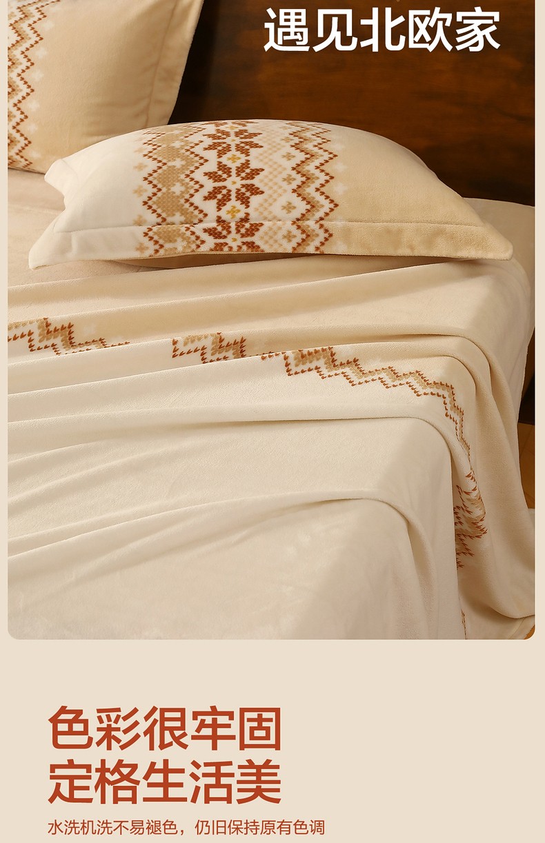 商品名称:水星 北欧·丛绒费尔岛牛奶绒床单(奶油色)230cmx245cm
