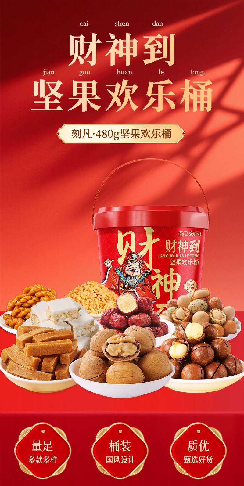 商品名称:刻凡零食大礼包坚果 财神到480g 697613136110