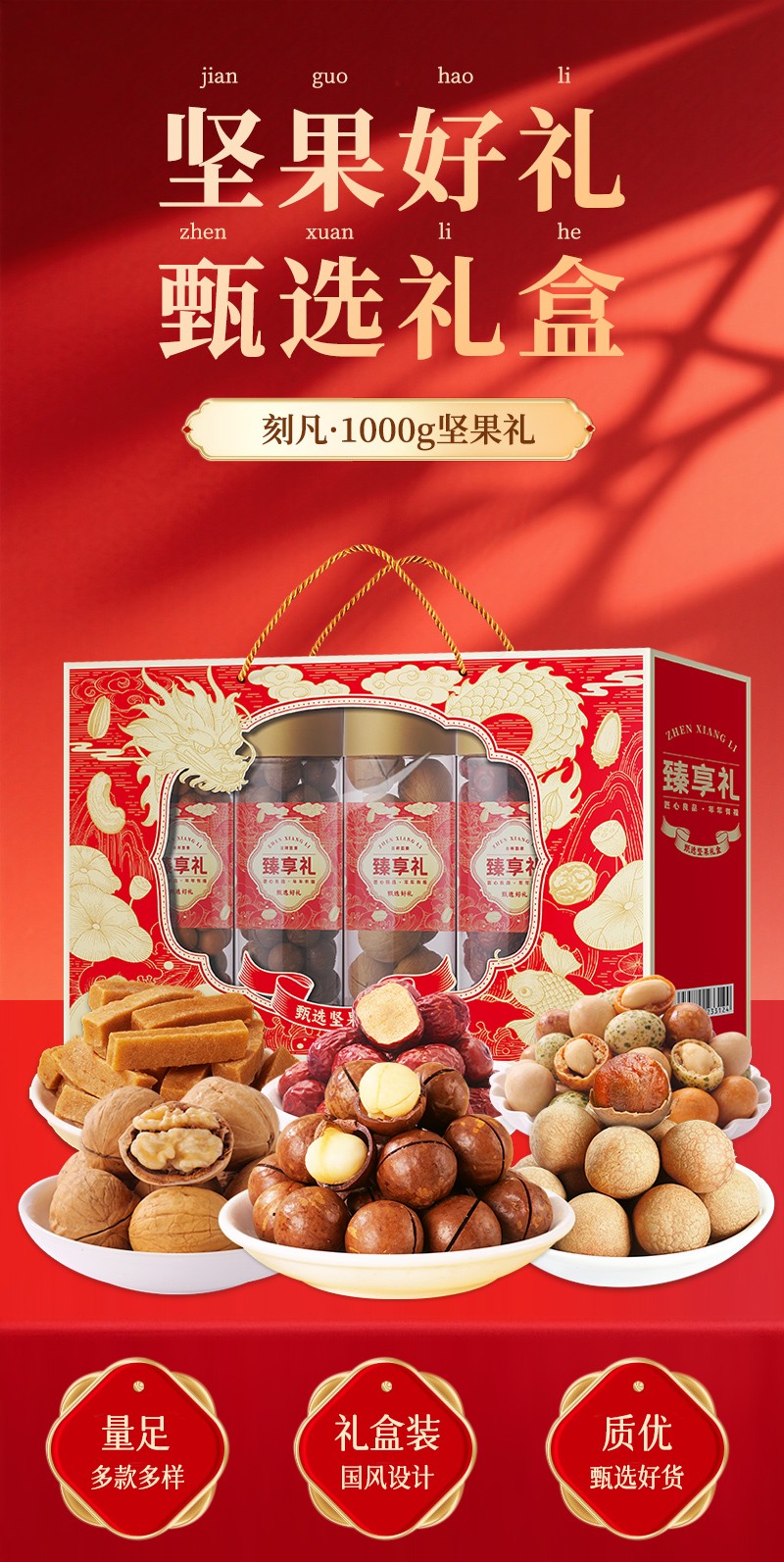 商品名称:刻凡零食大礼包坚果礼盒 罐装甄享礼1000g 6975822233124