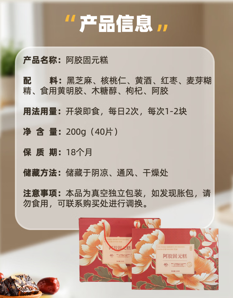 商品名称:启泰阿胶固元糕礼盒200g 6971822998117 偏远另加运费