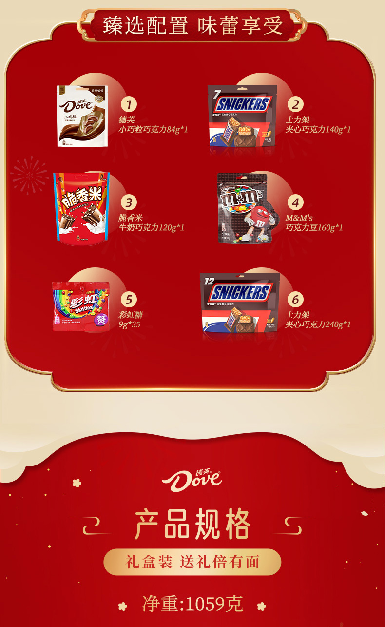 德芙福满臻礼巧克力礼盒1059克 6970340361250 偏远另加运费