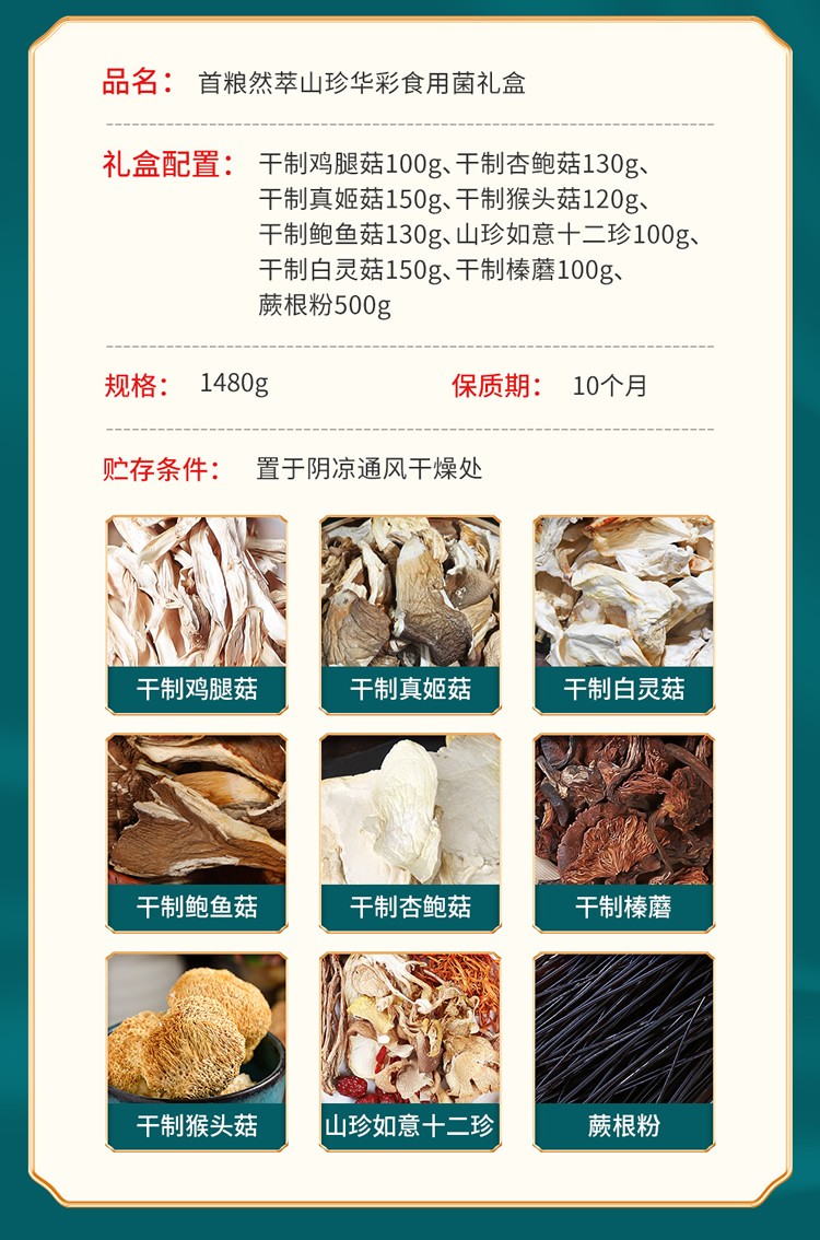 商品名称:首粮干菌然萃-山珍华彩1480g