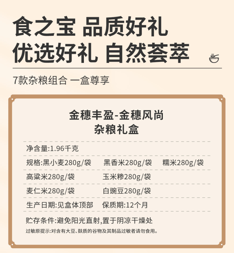 商品名称:首粮杂粮金穗丰盈-金穗风尚1960g 6972410514054