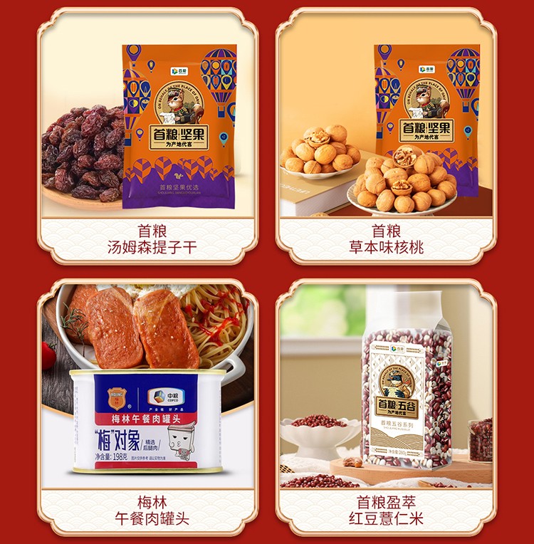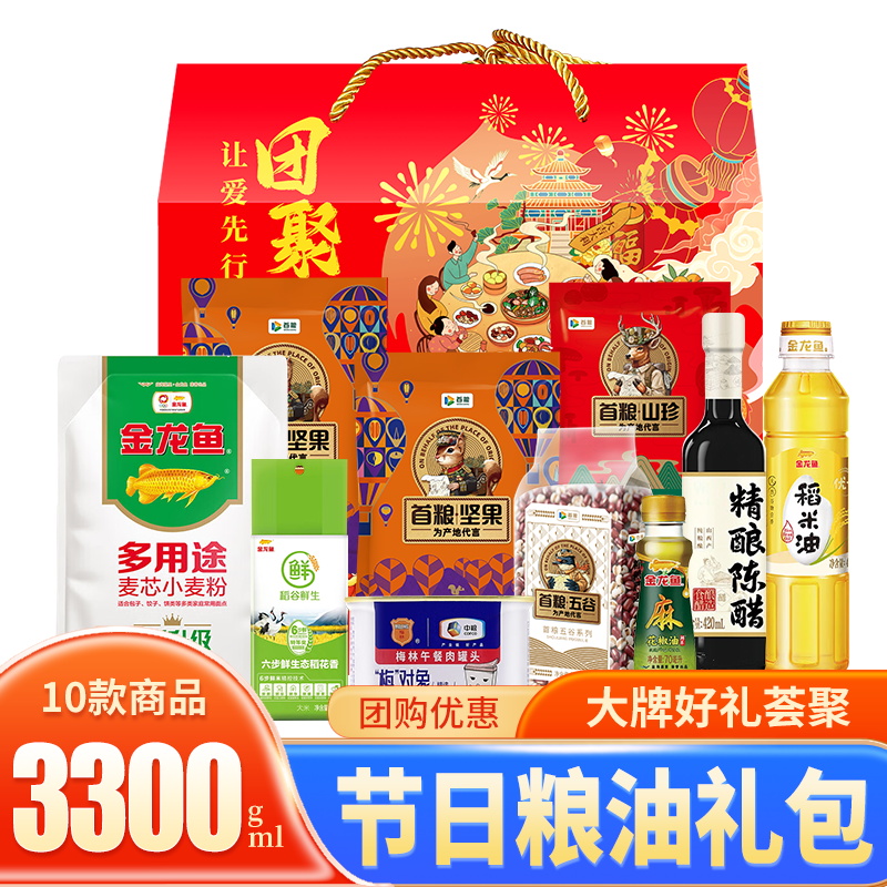 首粮乐享欢聚春节大礼包大米调料食用油小麦粉杂粮干菌干果组合3300g