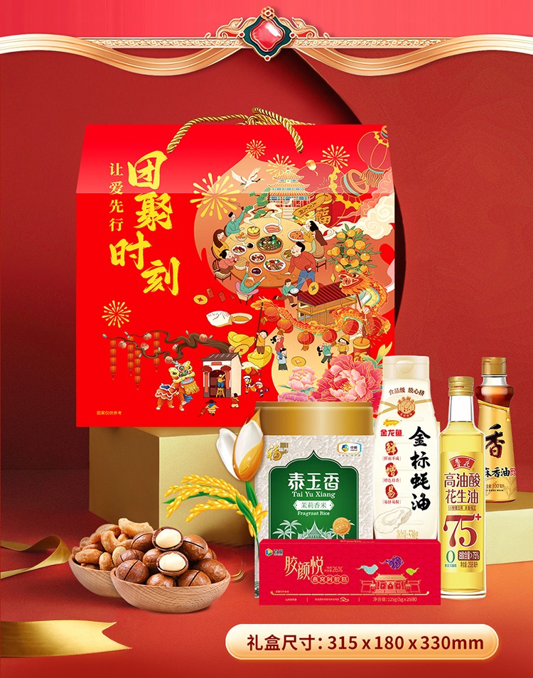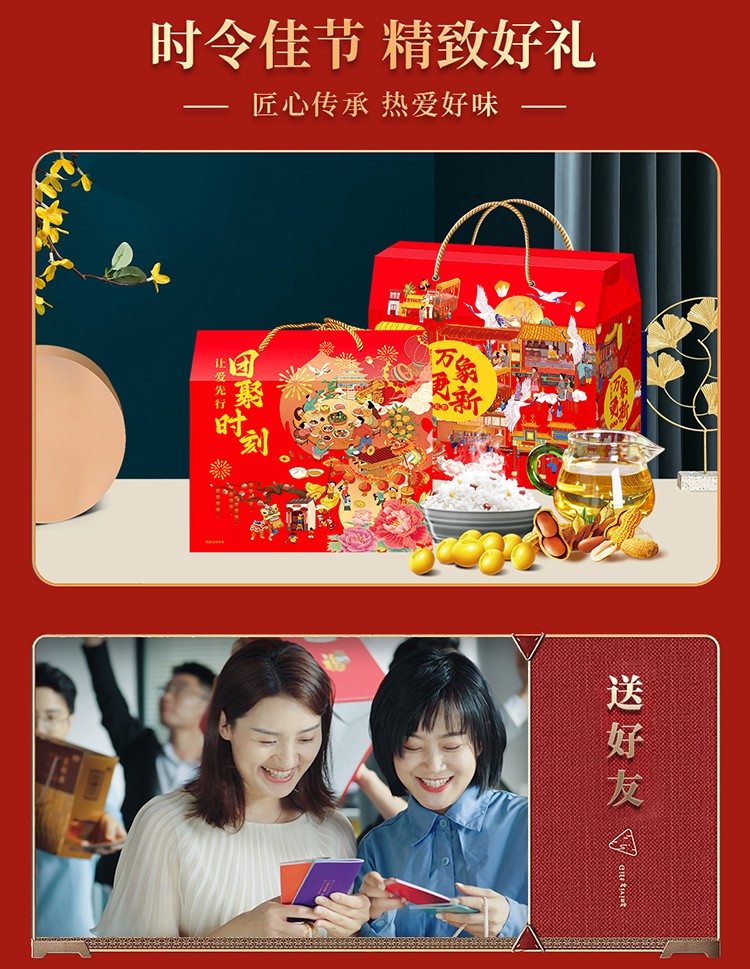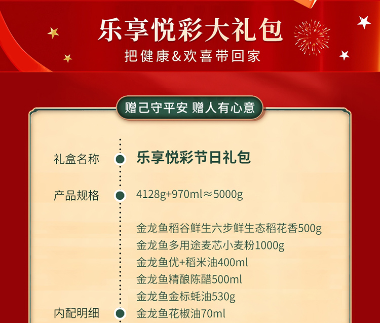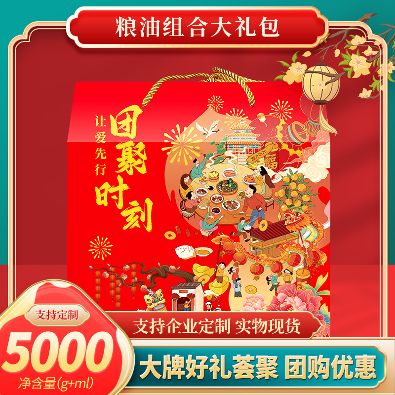 商品名称:首粮乐享悦彩春节大礼包大米小麦粉食用油调料杂粮滋补干果组合5000g