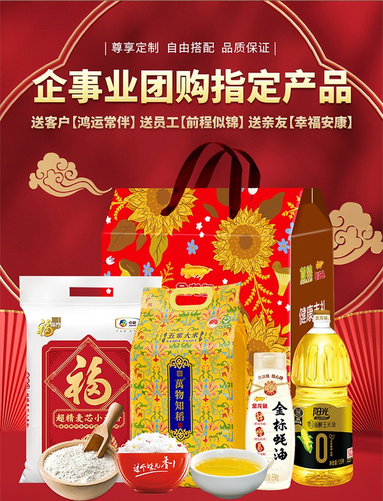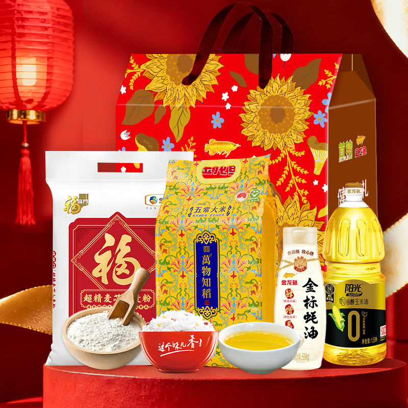 首粮春节大礼包福利A款 大米小麦粉玉米油耗油粮油组合 5530g+1500ml