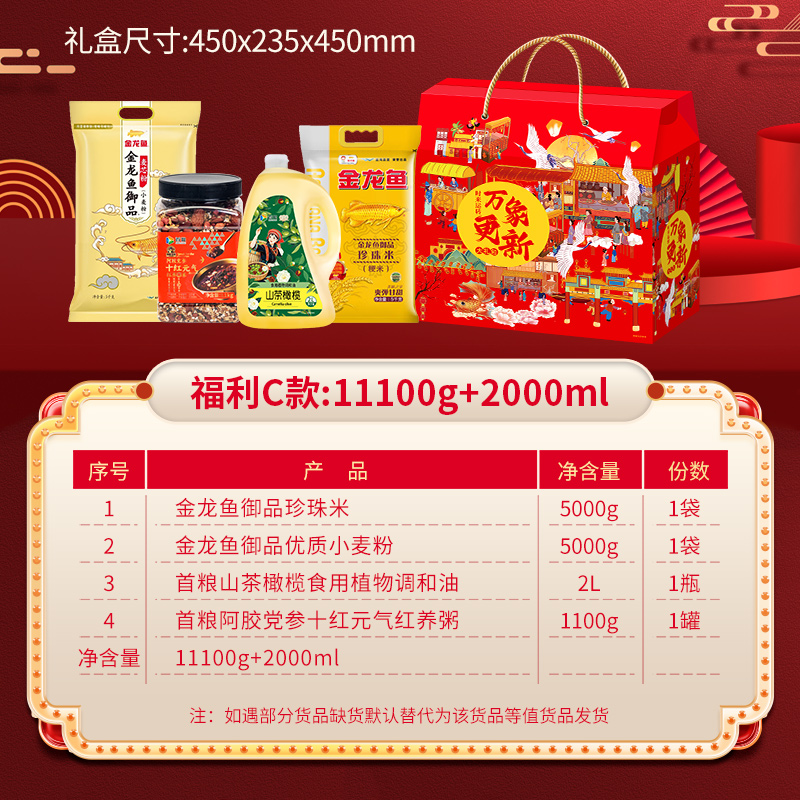 商品名称:首粮春节大礼包福利C款11100g+2000ml 粮油组合