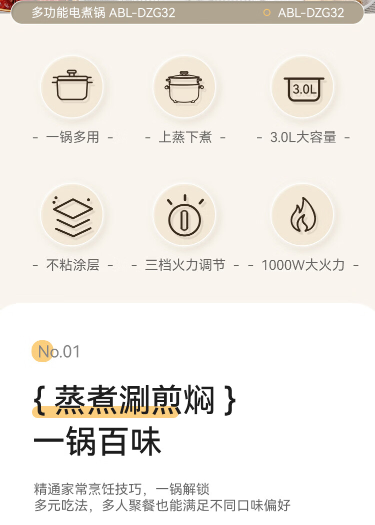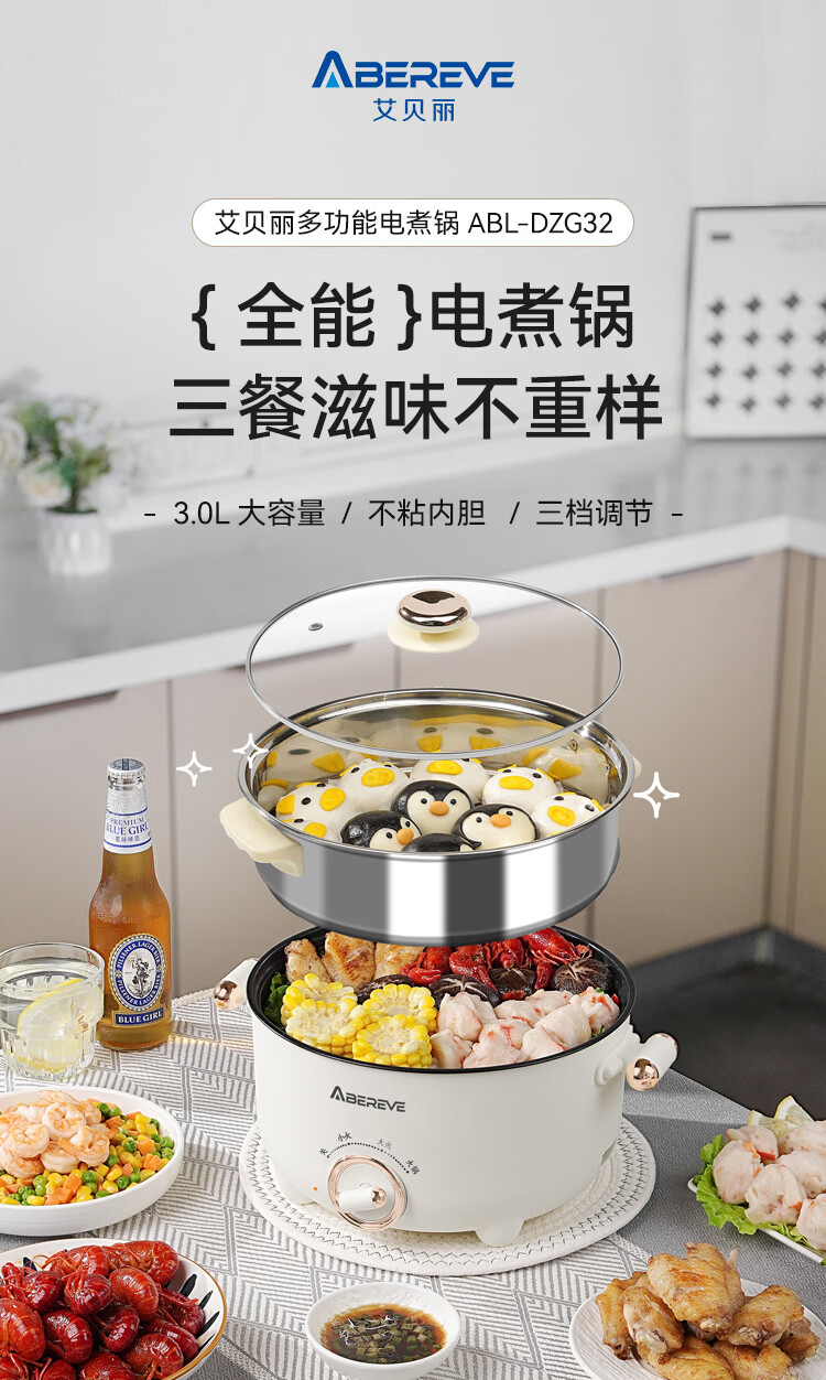 艾贝丽多功能电煮锅ABL-DZG32 6972149935243 偏远地区需加运费
