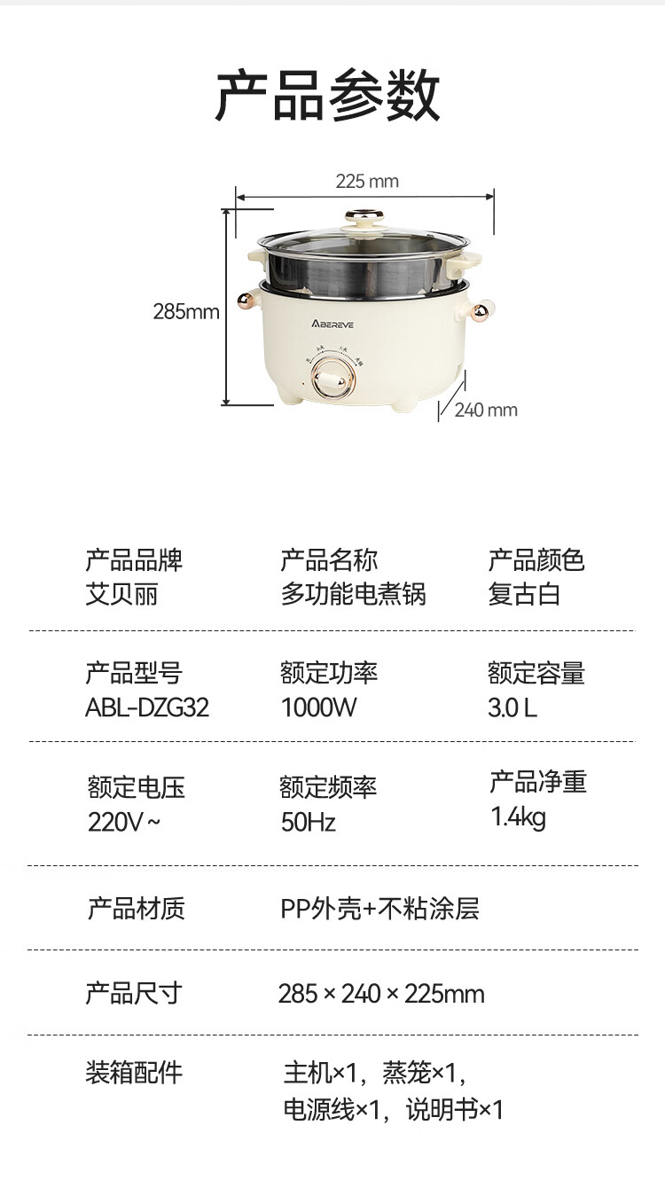 商品名称:艾贝丽多功能电煮锅ABL-DZG32 6972149935243 偏远地区需加运费