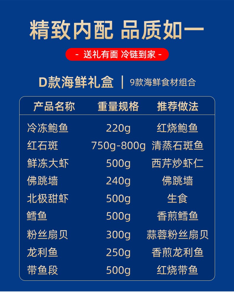 商品名称:汇鲜阁环球海鲜礼盒D款3760g 6977114210950 偏远另加运费