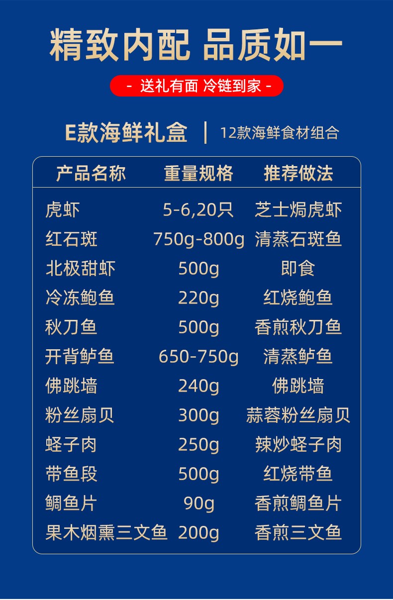 商品名称:汇鲜阁环球海鲜礼盒E款4600g 6977114210950 偏远另加运费