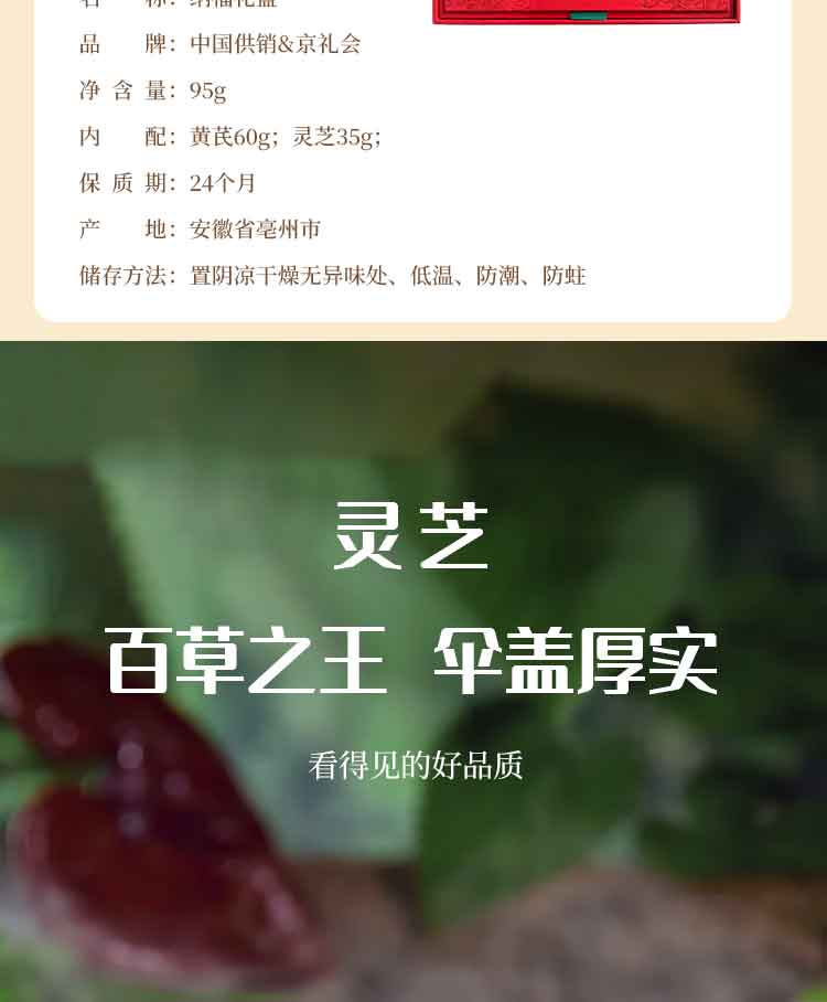 商品名称:首粮中国供销&京礼会--纳福礼盒黄芪灵芝95g 6976389953364