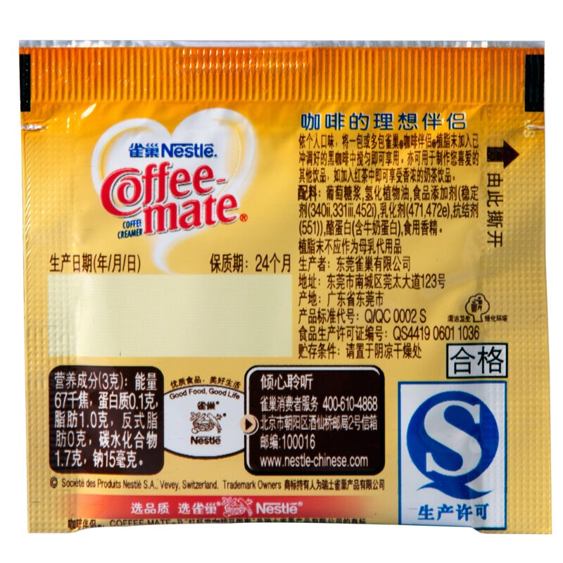 商品名称:雀巢(Nestle) 咖啡奶茶伴侣 植脂未3g*100包独立便携袋装