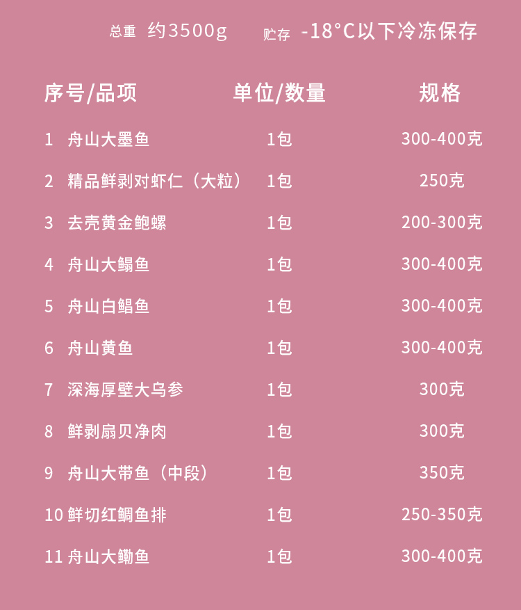 商品名称:渔老板东海渔场海鲜B佳品1388型 约3500g 6952014303520 偏远另加运费