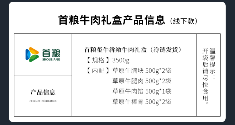 商品名称:首粮玺牛犇飨牛肉礼盒3500g 6970740748316