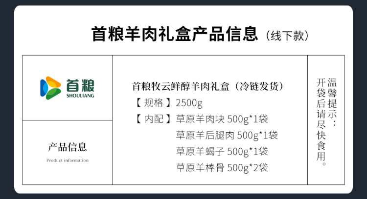商品名称:首粮牧云鲜醇羊肉礼盒2500g 6970740748330