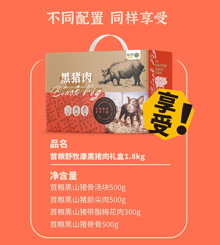 商品名称:首粮野牧康黑猪肉礼盒1800g 6976698851733
