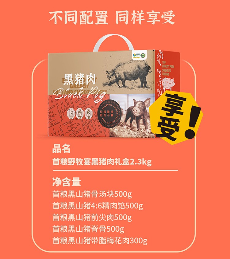 商品名称:首粮野牧宴黑猪肉礼盒2300g 6976698851726