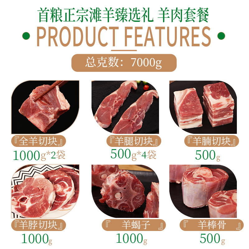 商品名称:首粮盐池滩羊-臻选礼 套餐礼盒羊肉7000g新款 6976698850071