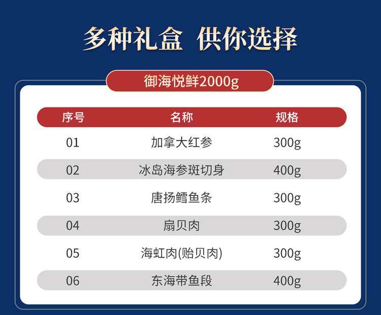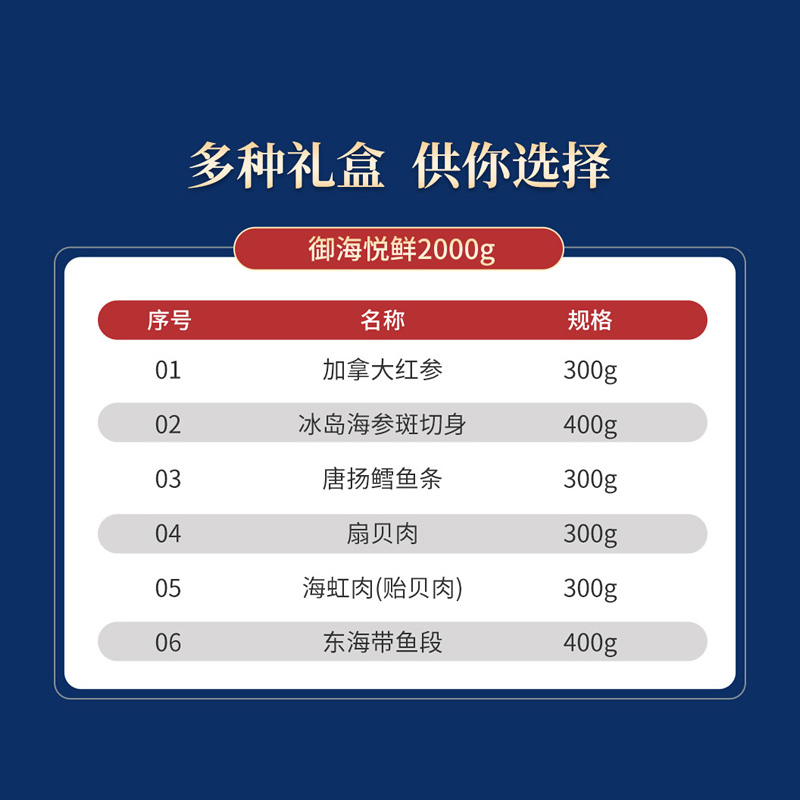 商品名称:首粮-御海悦鲜 海鲜甄选海鲜礼盒2000g