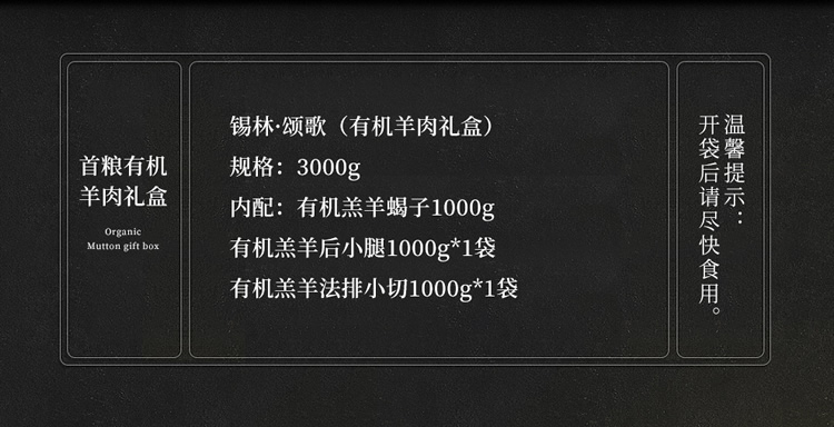商品名称:首粮-银林·首粮有机羊肉礼盒B· 颂歌3000g 6970740747111