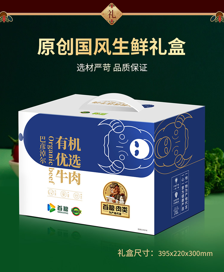 商品名称:首粮-巴彦卓尔·首粮有机牛肉礼 盒B·臻鲜3000g 6976698851450
