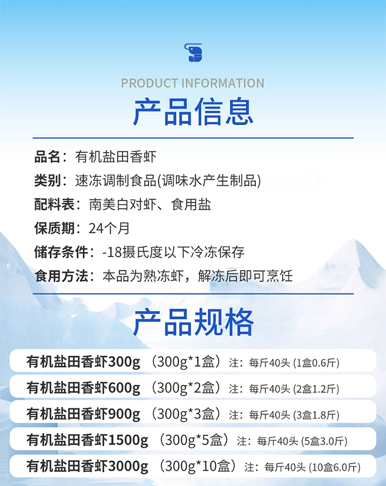 商品名称:首粮有机盐田香虾1500g 6976619020156