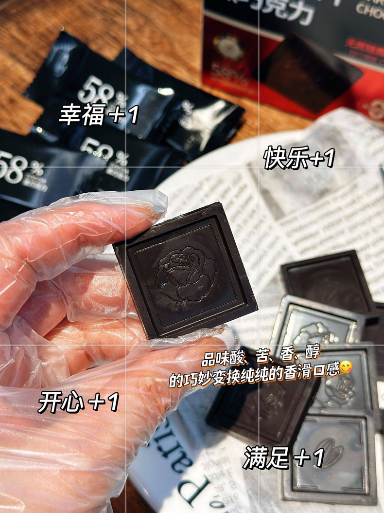 商品名称:甘滋罗.可可脂薄片黑巧克力 40g/盒(浓度58% )4盒装