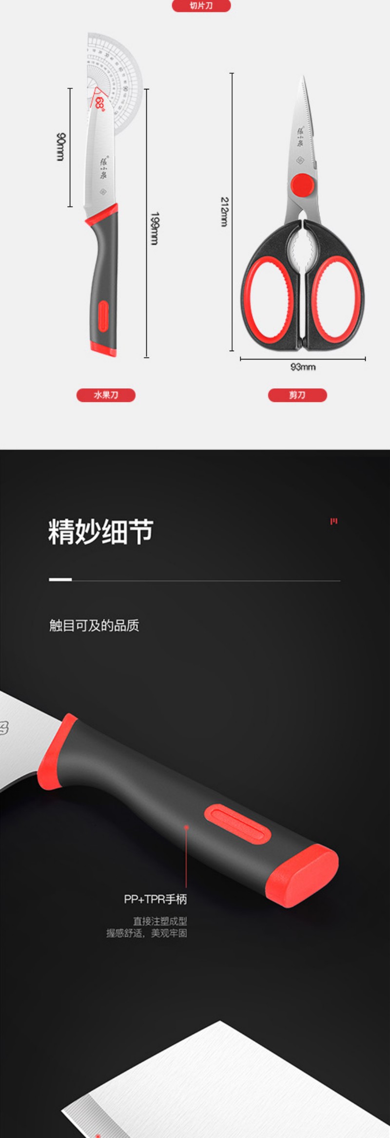 商品名称:张小泉红韵系列刀具套装菜刀水果刀剪刀三件套 D400061 6957389146864 偏远另加运费