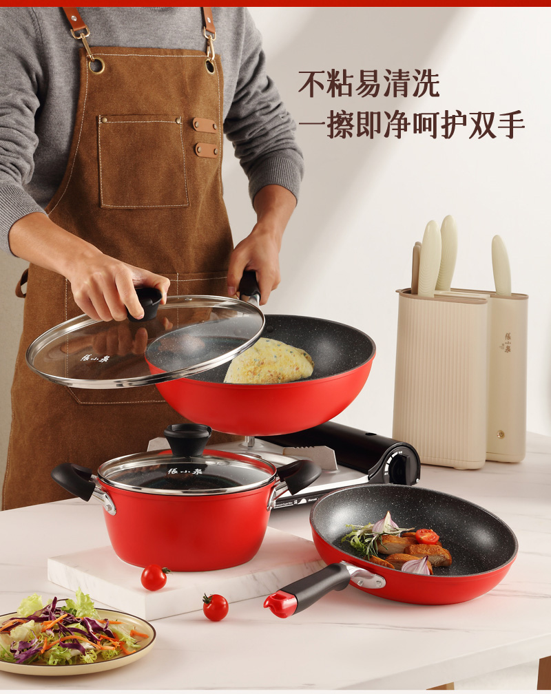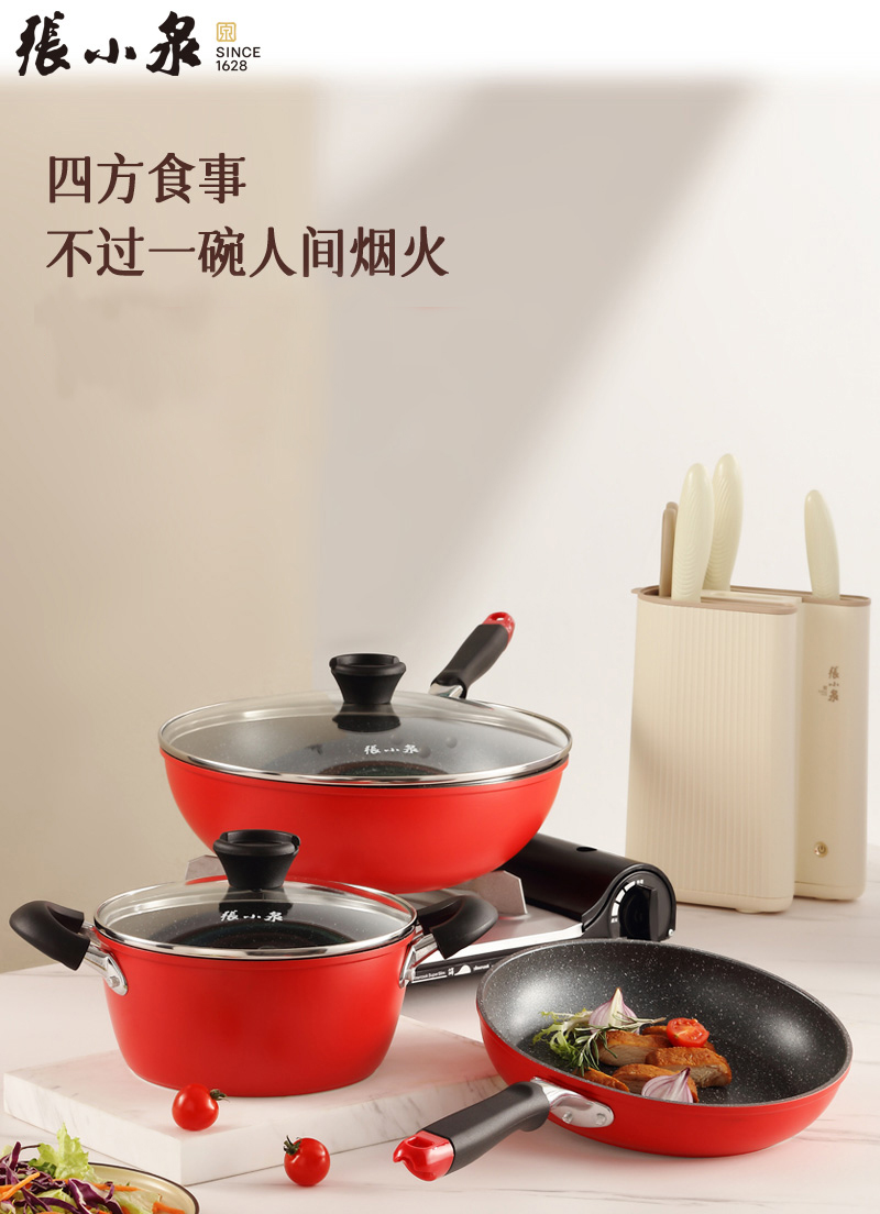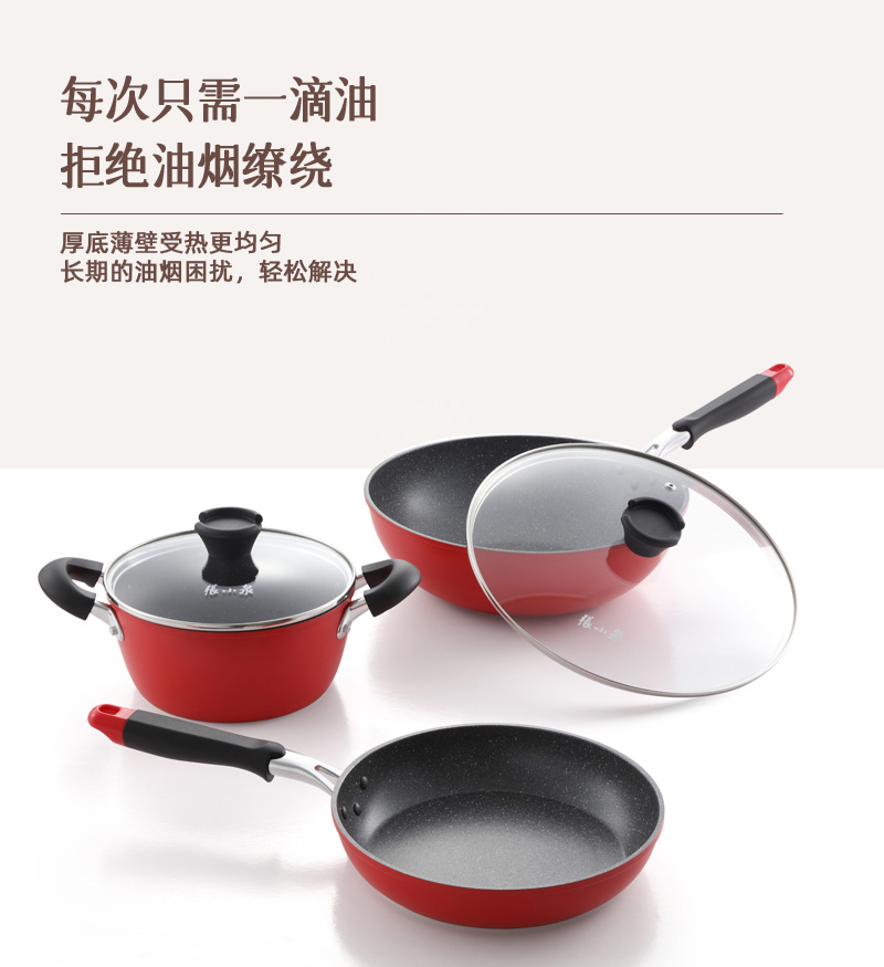 张小泉火山岩不粘锅炒锅煎锅汤锅三件套 C35570100 6957389136728 偏远另加运费
