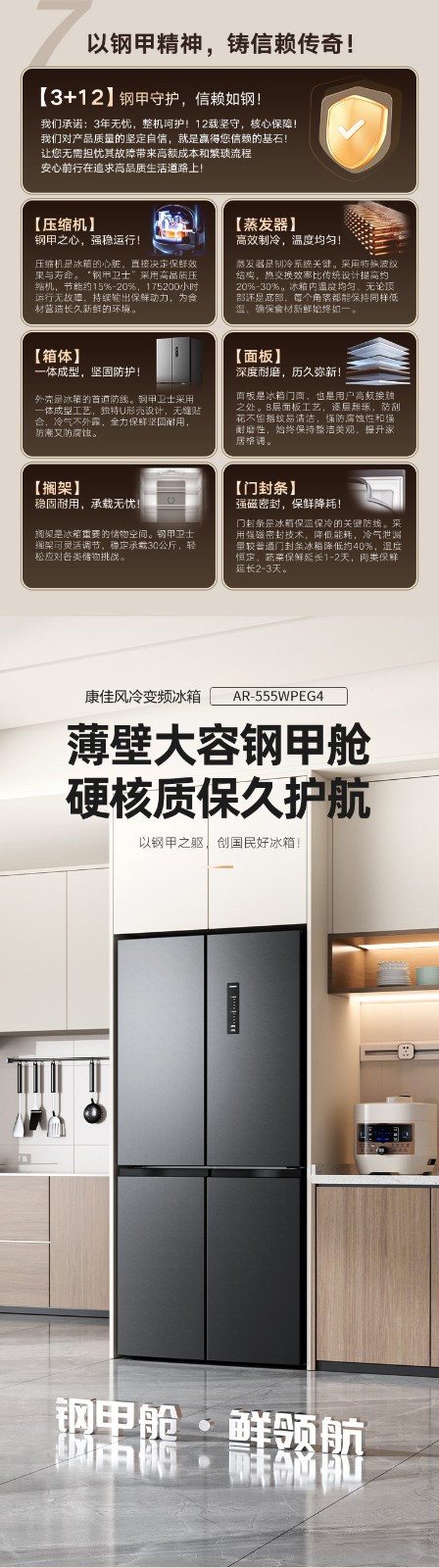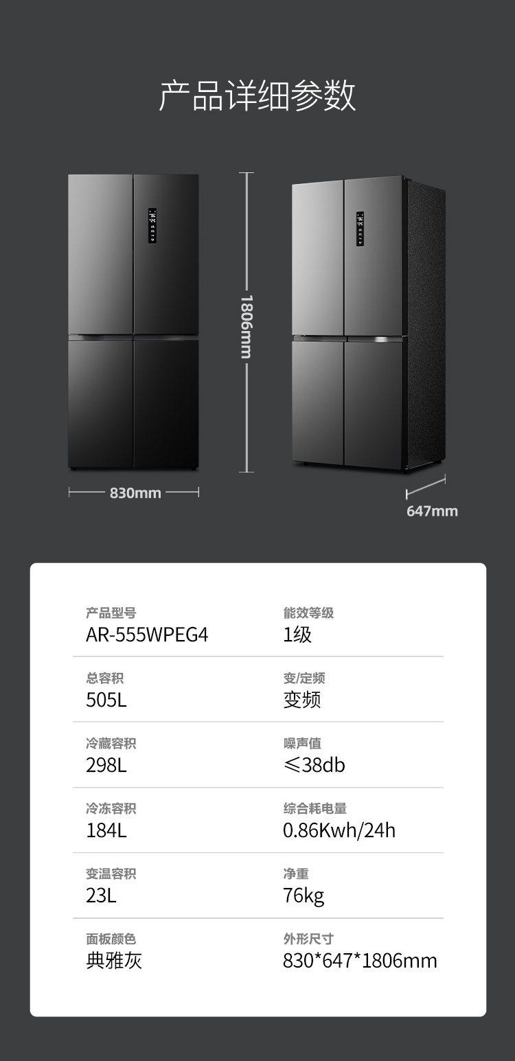 康佳505升十字门冰箱AR-555WPEG4 6941794705808 偏远另加运费