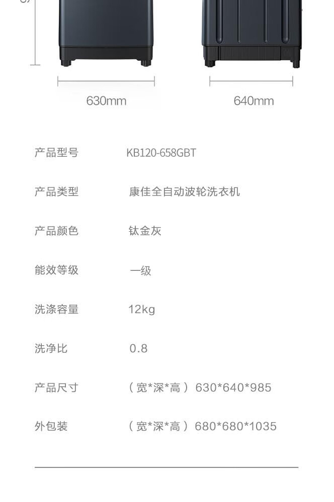 商品名称:康佳12公斤一级能效波轮洗衣机KB120-658GBT 6941794705594 偏远另加运费