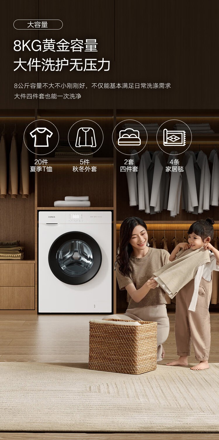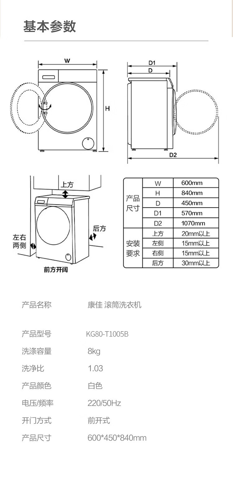 商品名称:康佳8公斤一级能效滚筒洗衣机KG80-T1005B 6941794705839 偏远另加运费