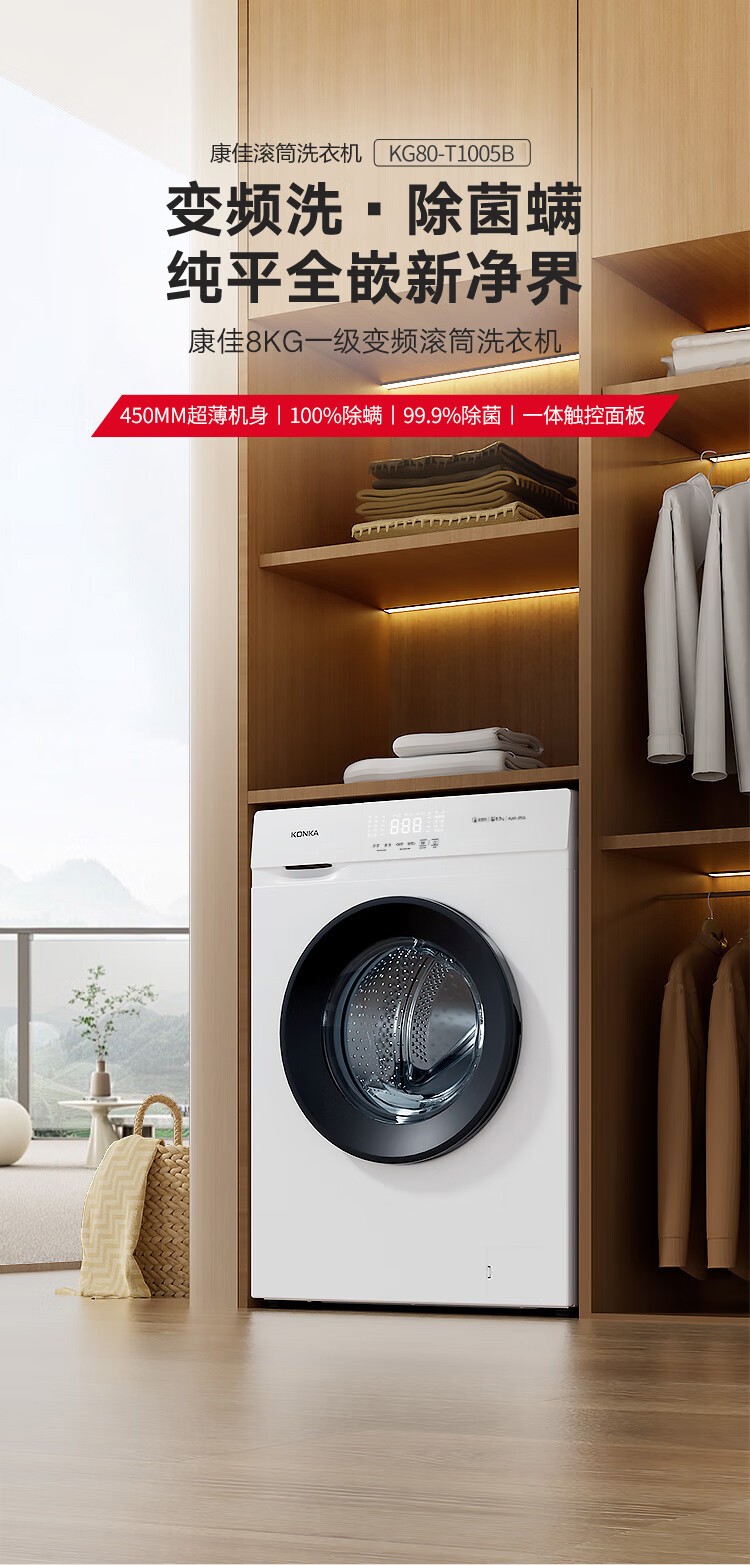 康佳8公斤一级能效滚筒洗衣机KG80-T1005B 6941794705839 偏远另加运费