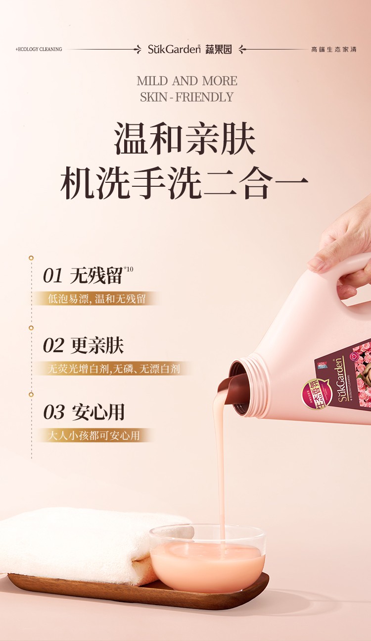 SukGarden蔬果园天然香乌木玫瑰柔护洗衣液2kgSGY0666