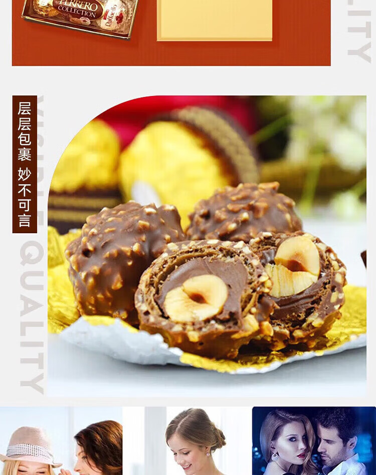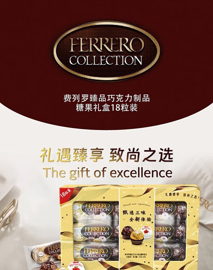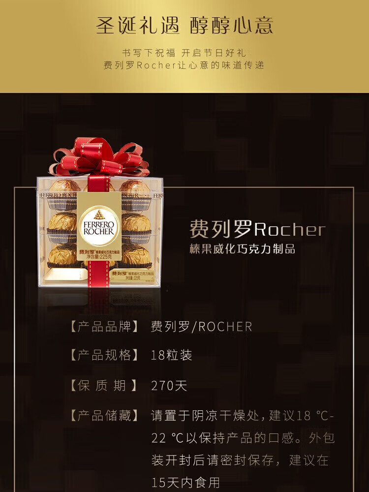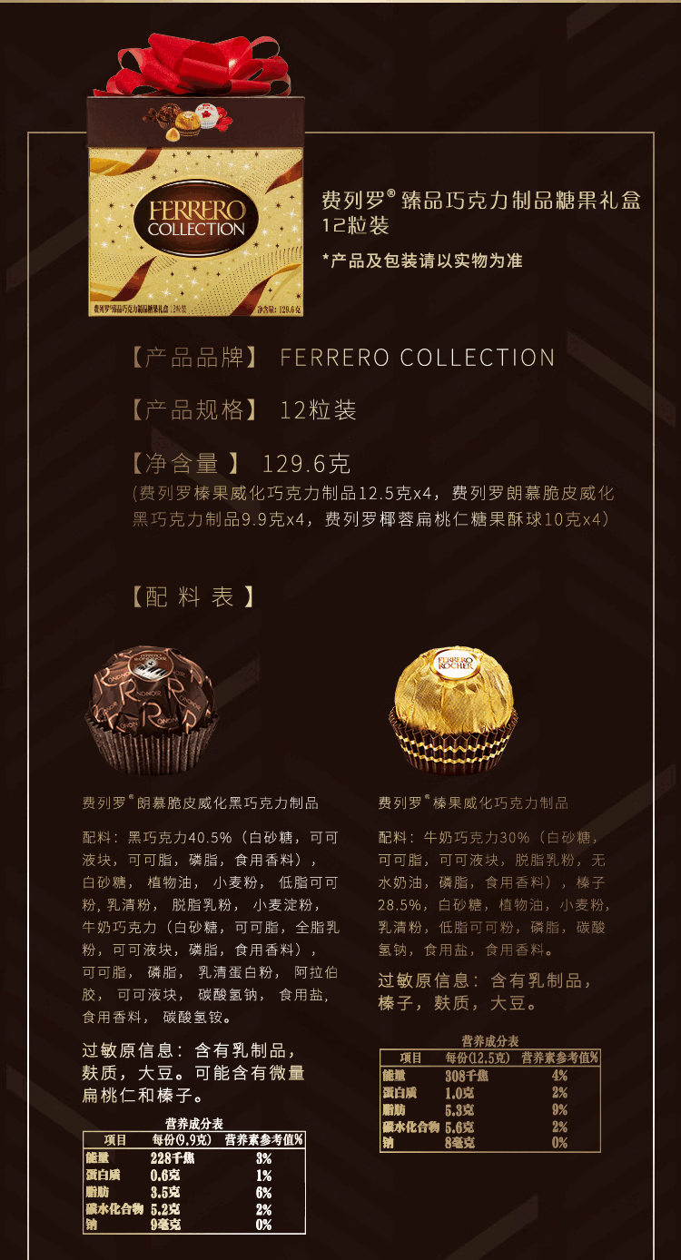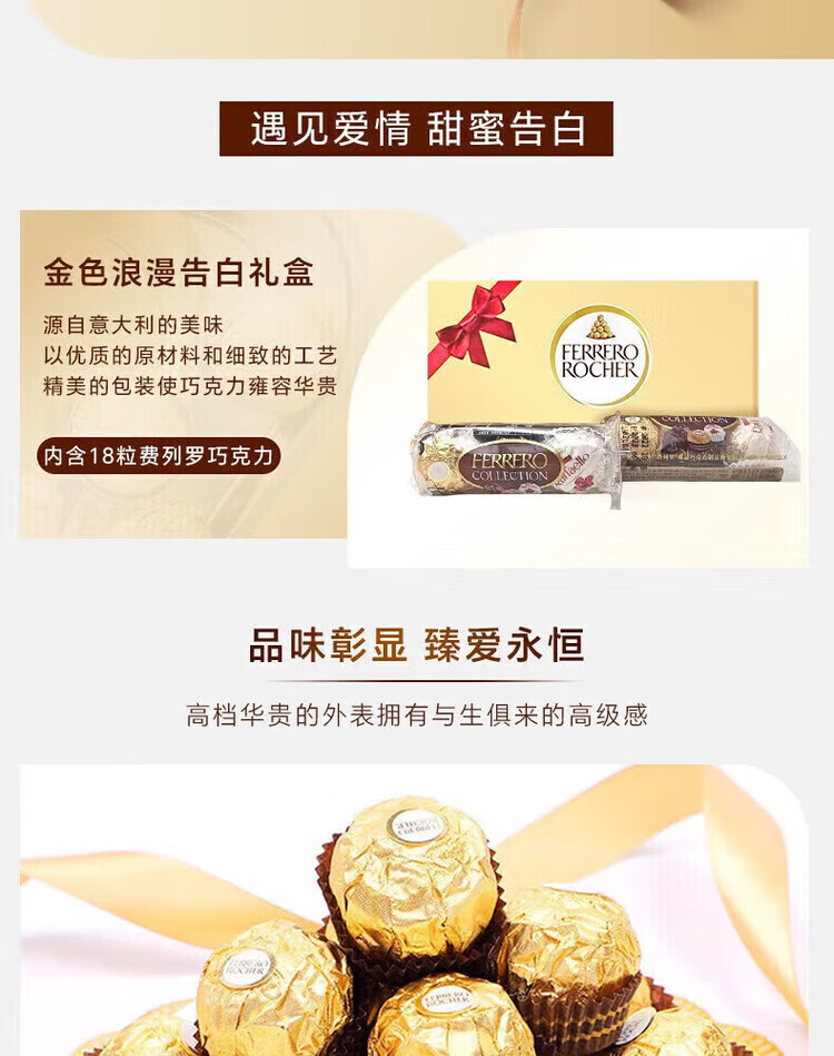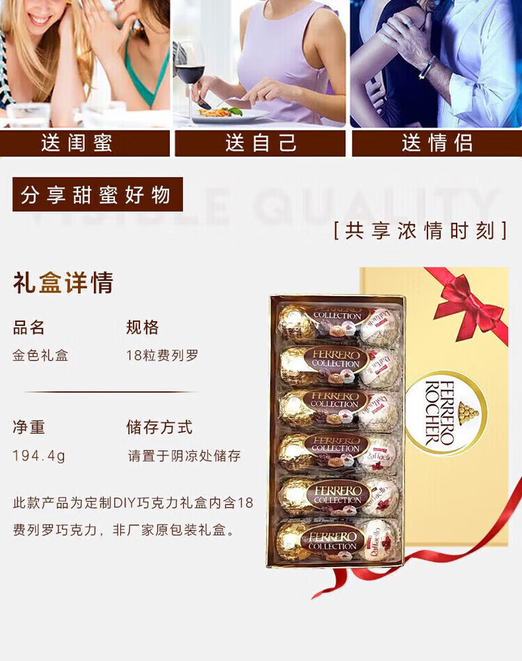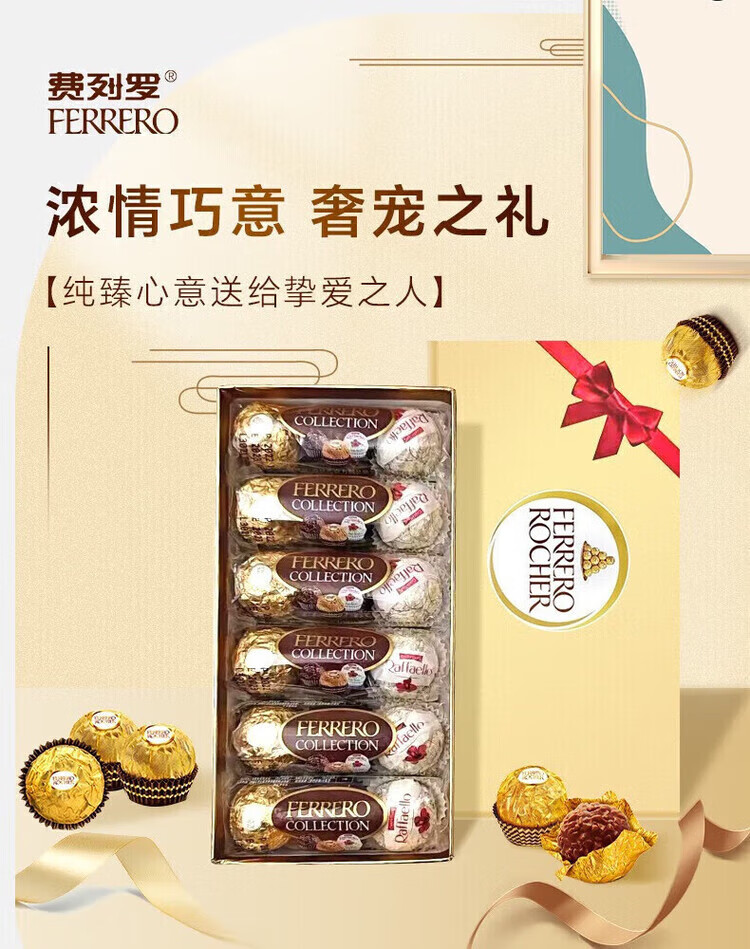 商品名称:费列罗臻品巧克力制品糖果12粒方形礼盒装 MWF T12 cube 129.6g