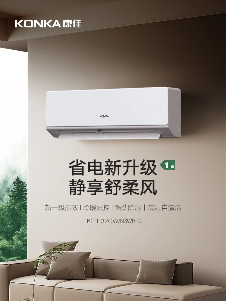 康佳小1.5匹一级能效冷暖挂机空调KFR-32GW/N3WB10 6941794705747 偏远另加运费