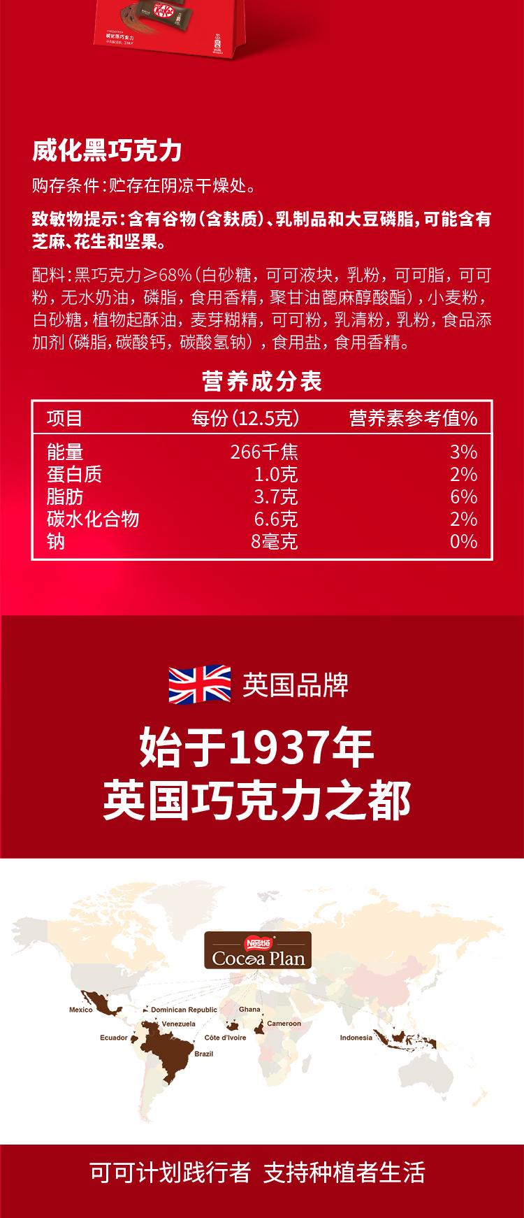 商品名称:雀巢奇巧威化黑巧克力21枚立袋装 252g