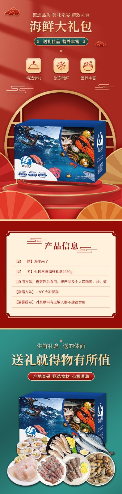 商品名称:海水来了 七珍玉食海鲜礼盒2450g