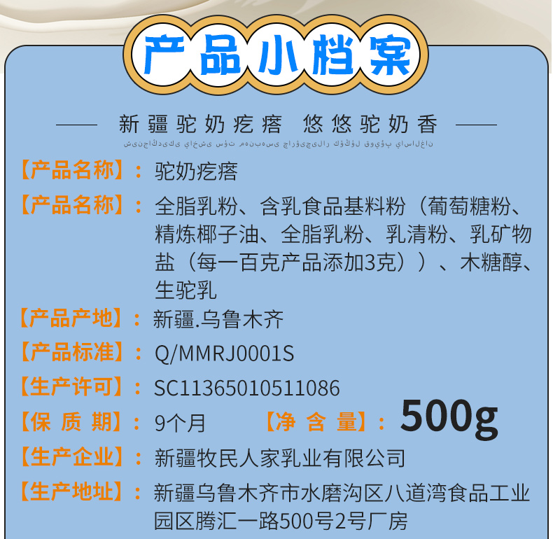 商品名称:牧民人家新疆骆驼奶疙瘩500克*2