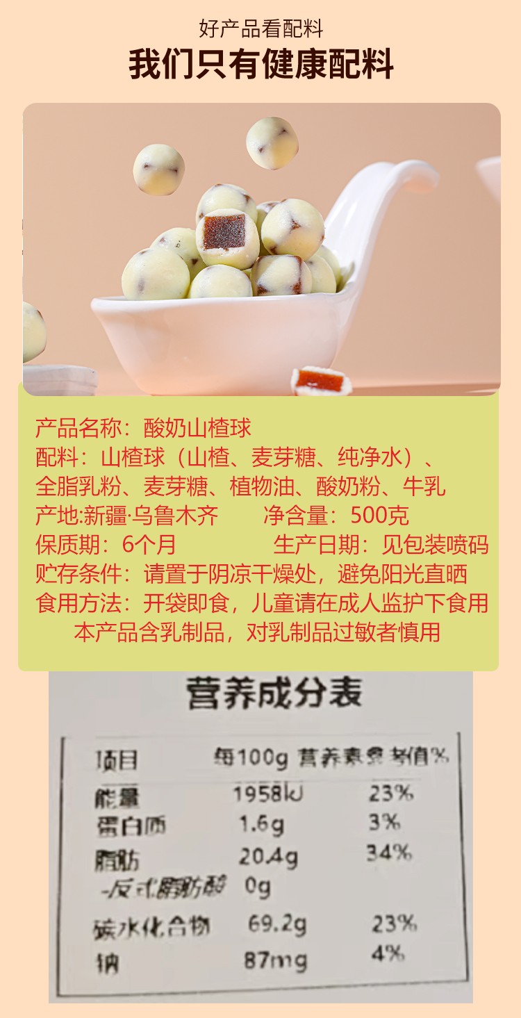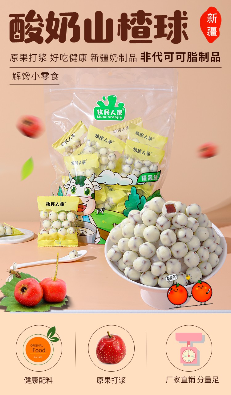 商品名称:牧民人家新疆酸奶山楂球500克*2
