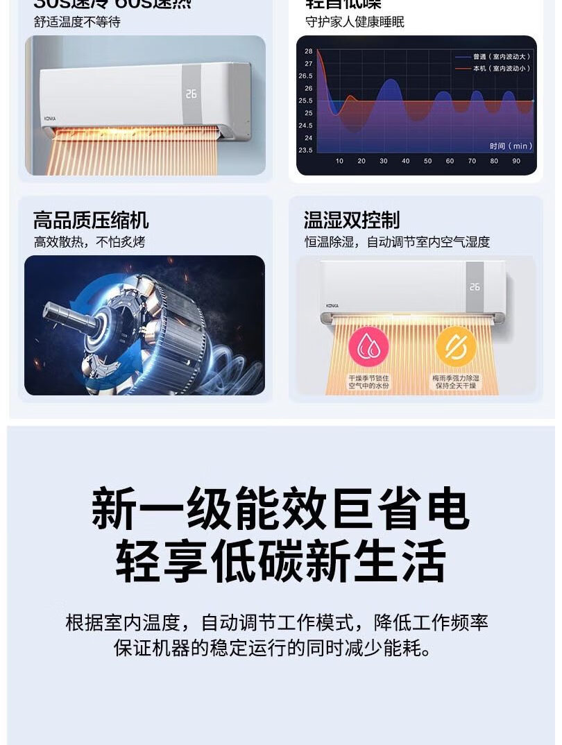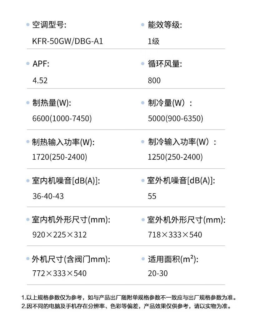 商品名称:康佳2匹一级能效冷暖挂机空调KFR-50GW/DBG-A1 6941794705310 偏远另加运费