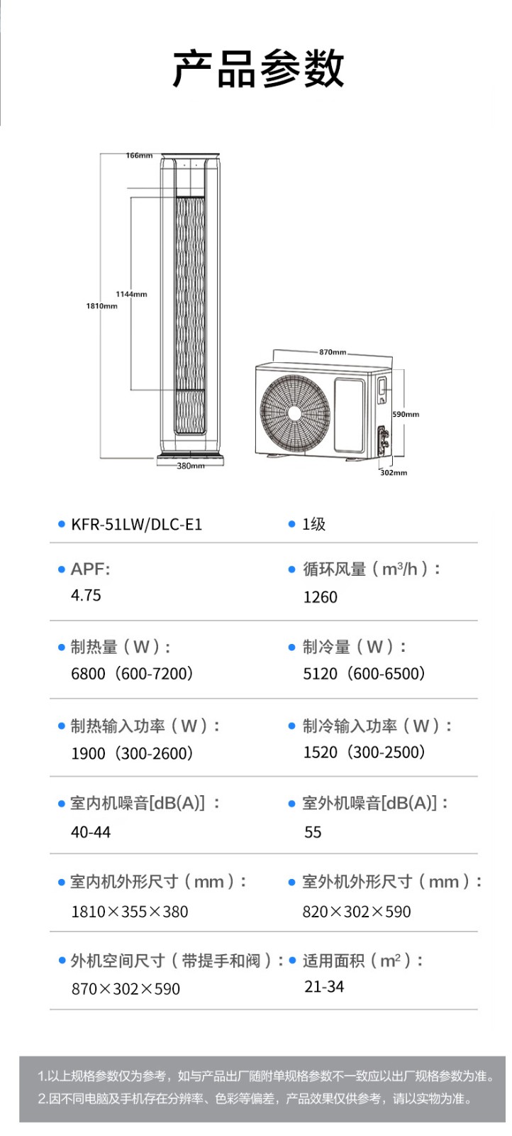 商品名称:康佳2匹一级能效冷暖柜机空调KFR-51LW/DLC-E1 6941794705723 偏远另加运费